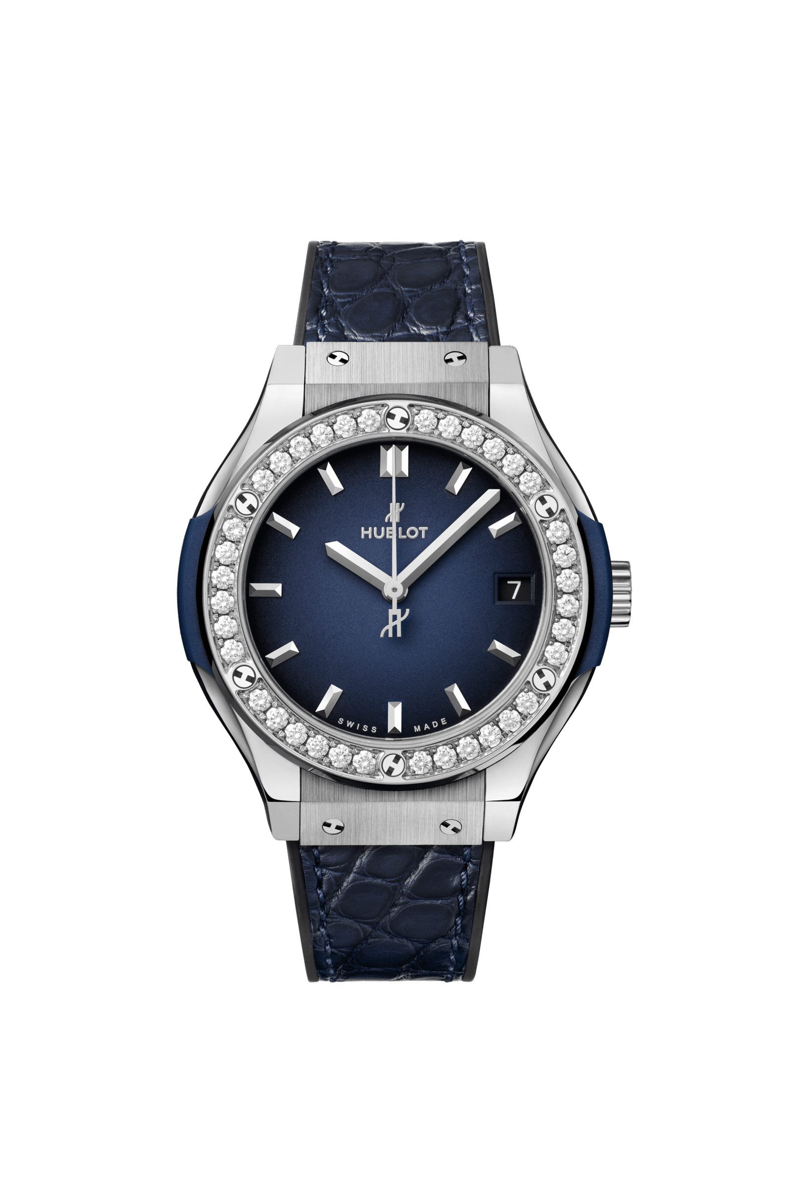 Hublot Classic Fusion Titanium Blue Dial 33mm Auto Women’s Watch 585.NX.7170.NX