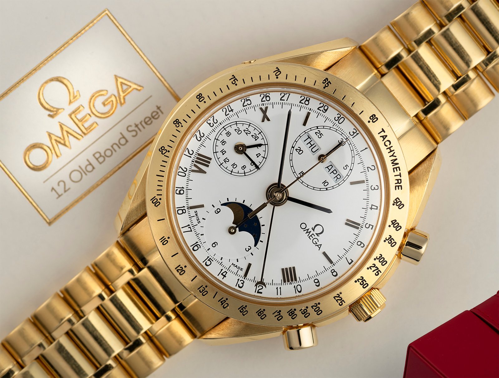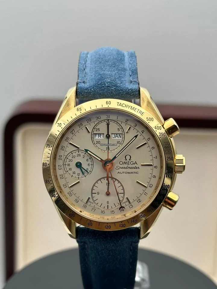 Omega Speedmaster 18k Yellow Gold White Dial 39mm Automatic Mens Watch 175.0034